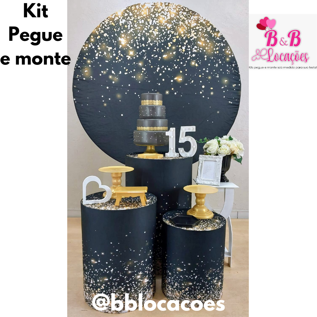 Glitter Dourado e Preto – 15 anos – Mulher – Kit Clássico 1