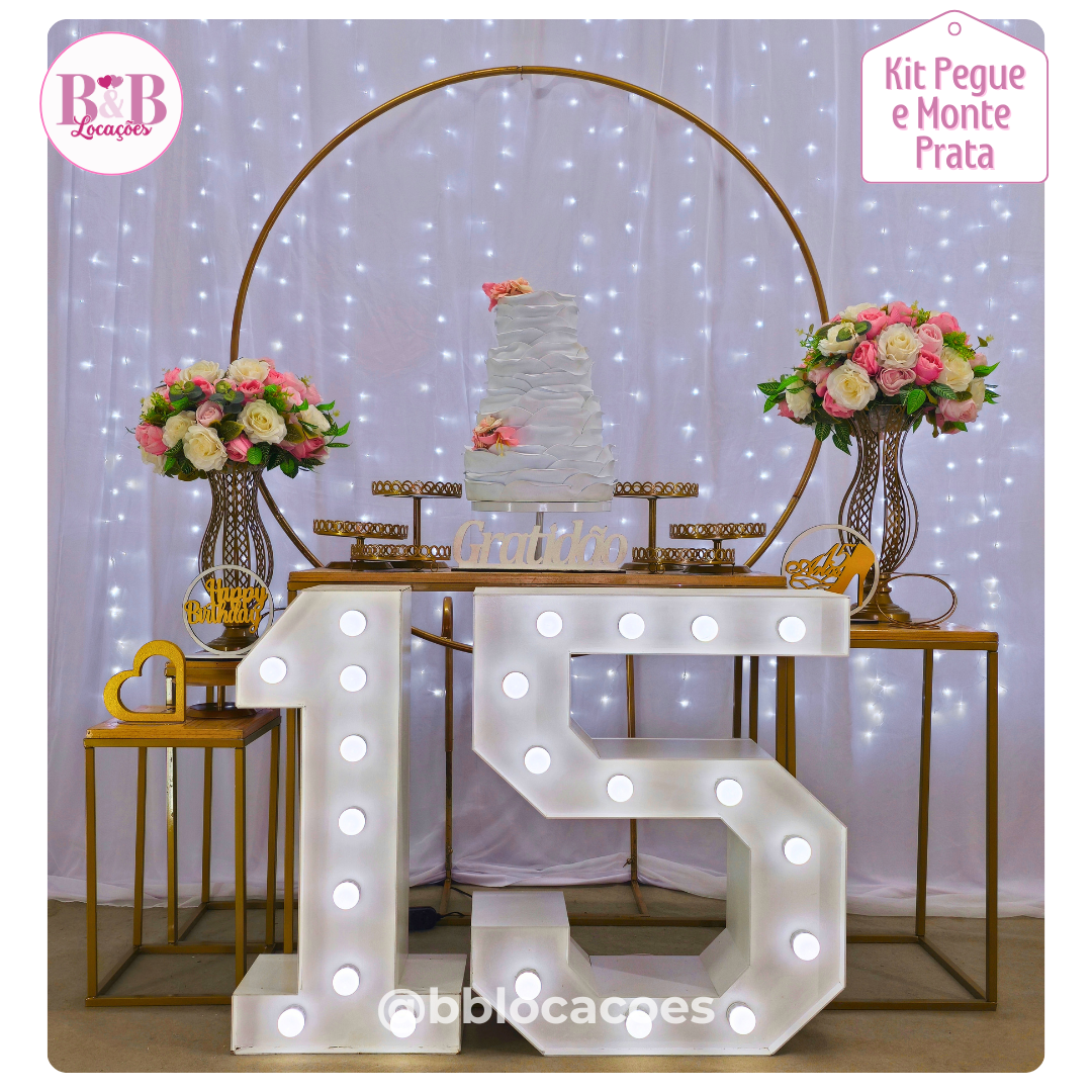 Kit Prata 2 arranjos Rosa 15 anos quantidade