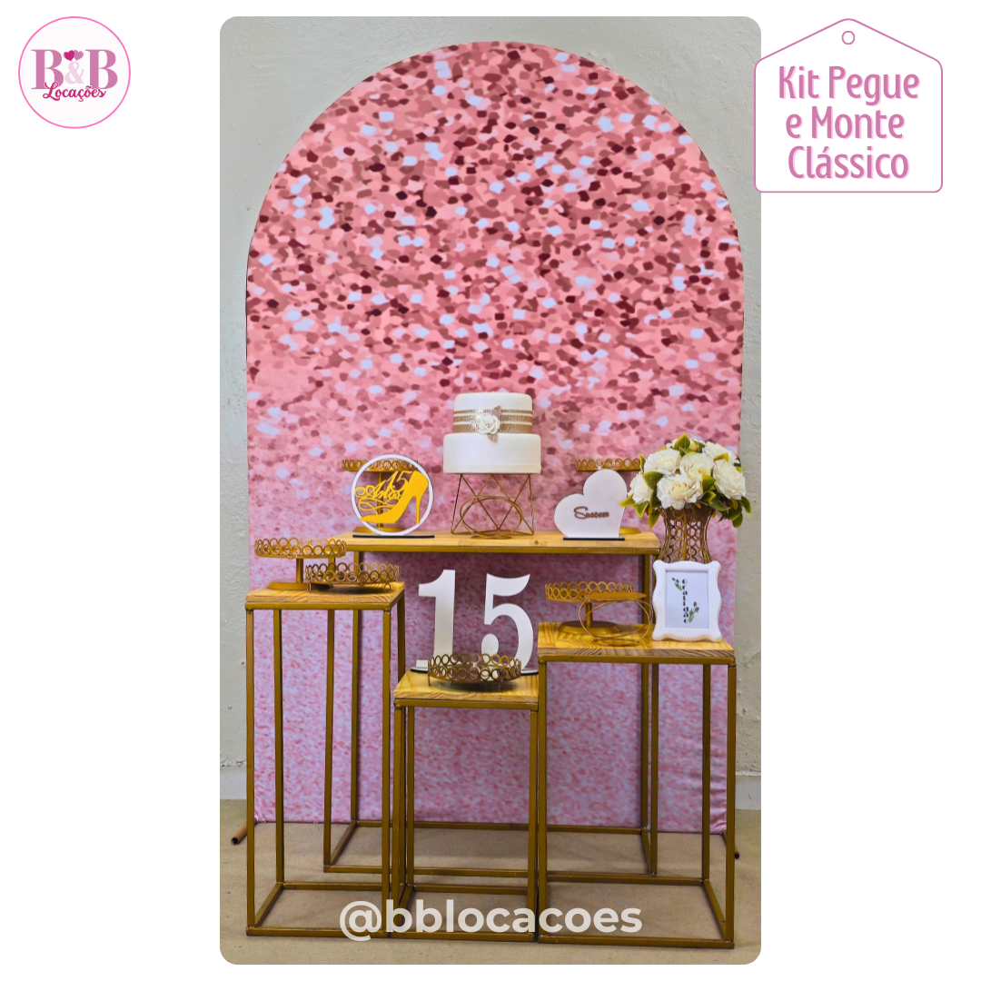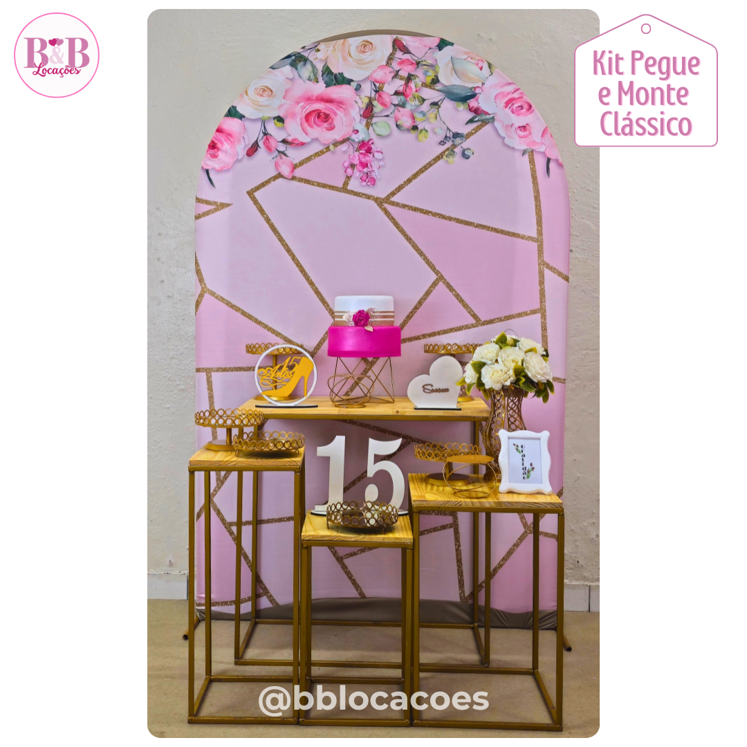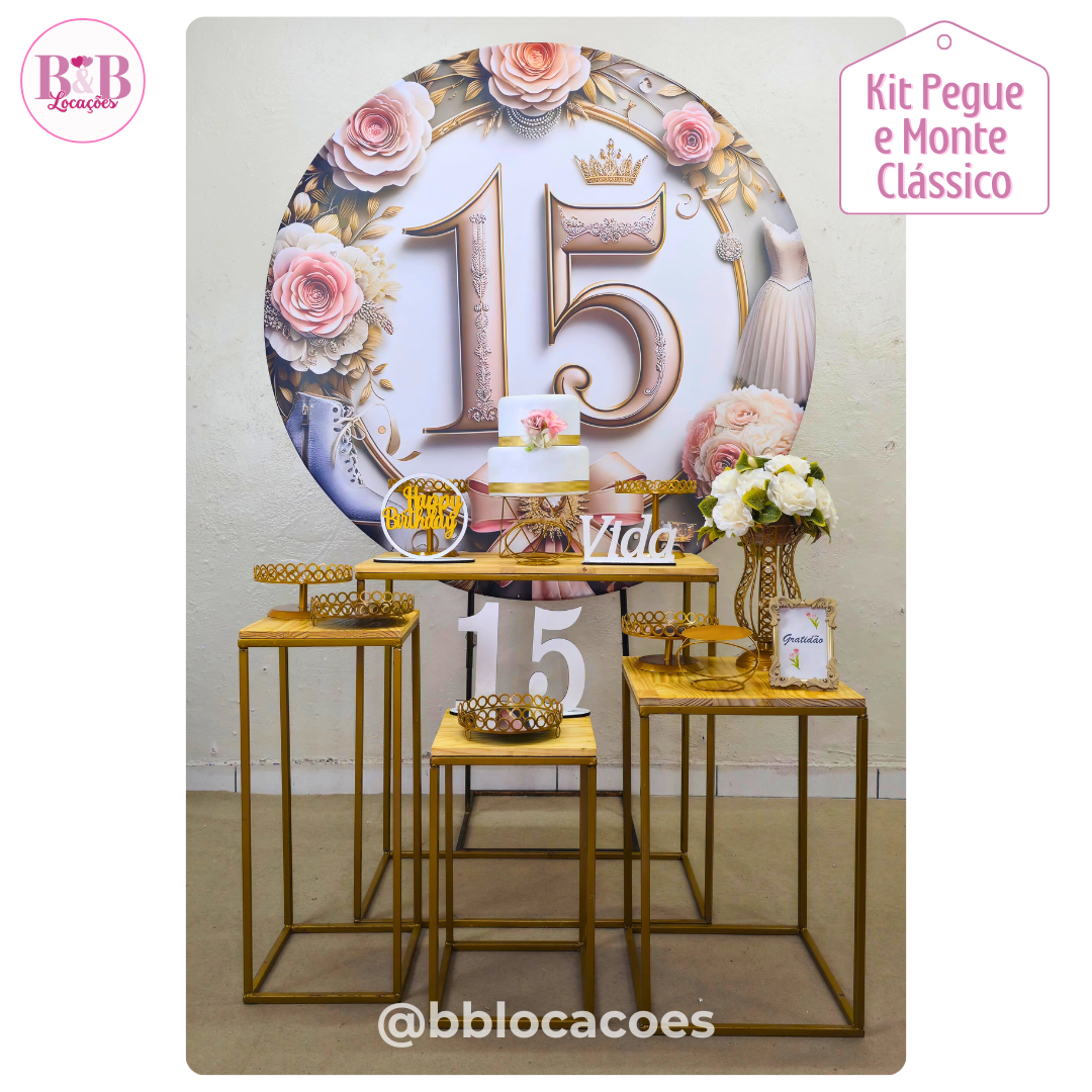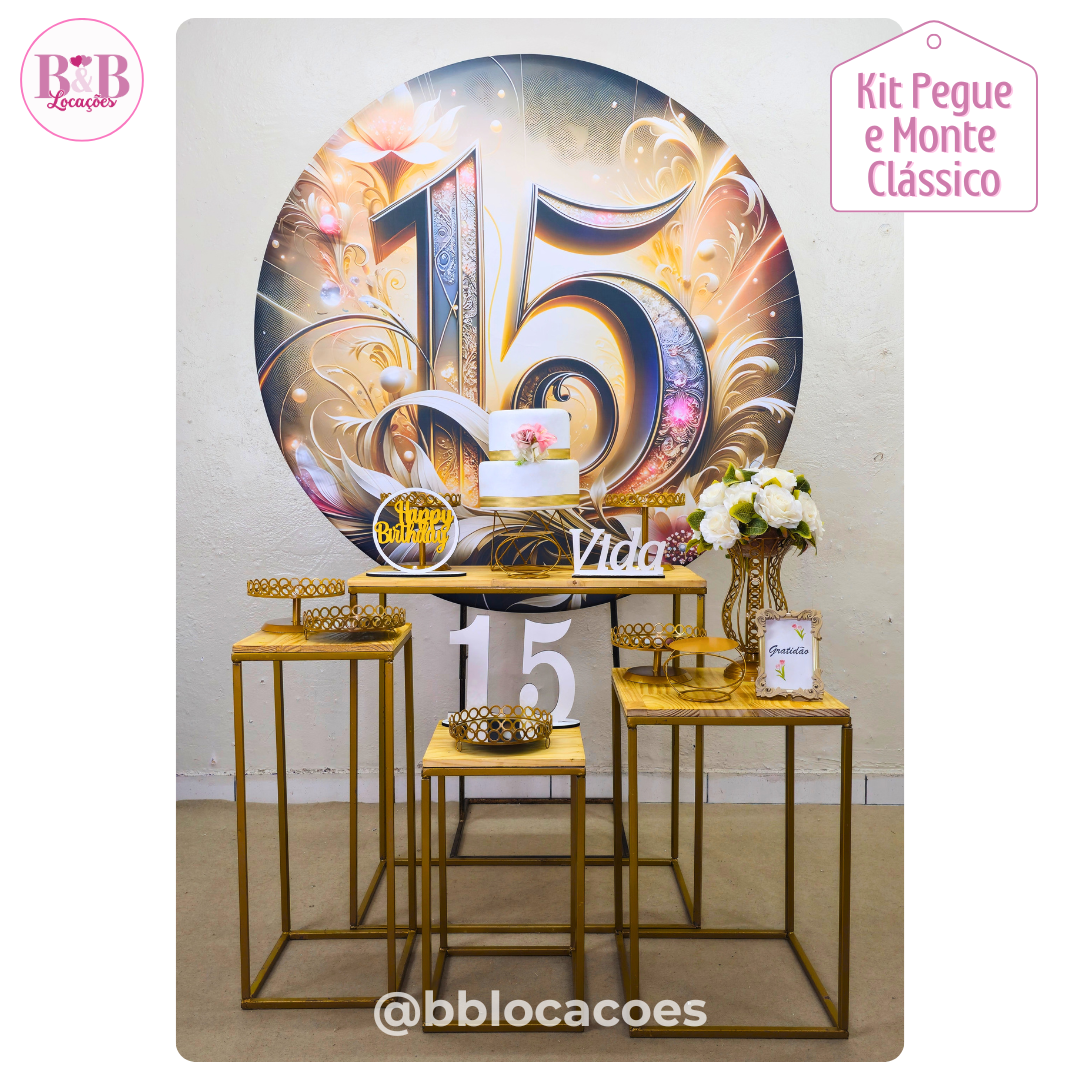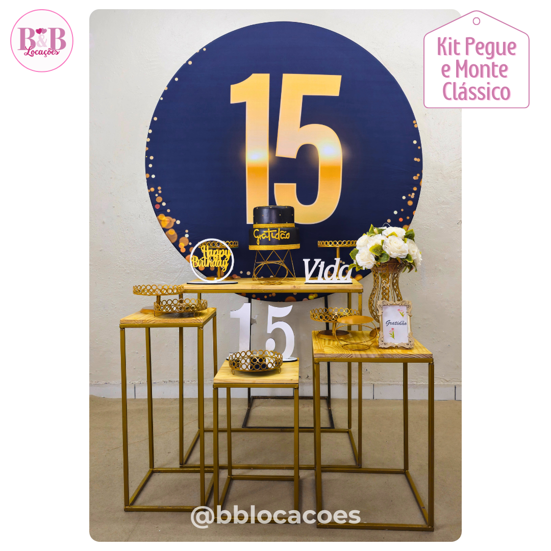 O kit Clássico com mesas de ferro é composto com todos os itens da foto.